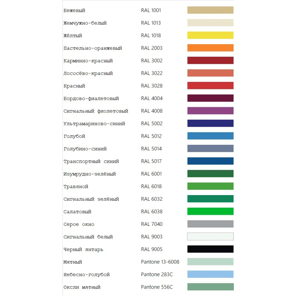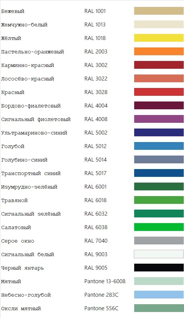 Цвет каркаса возможен в черном, белом исполнении или по палитре RAL.