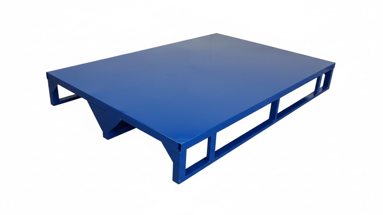 Каркас поддона выполнен из профильной трубы. На изделии есть направляющие для вил погрузчика (гидравлической тележки).
